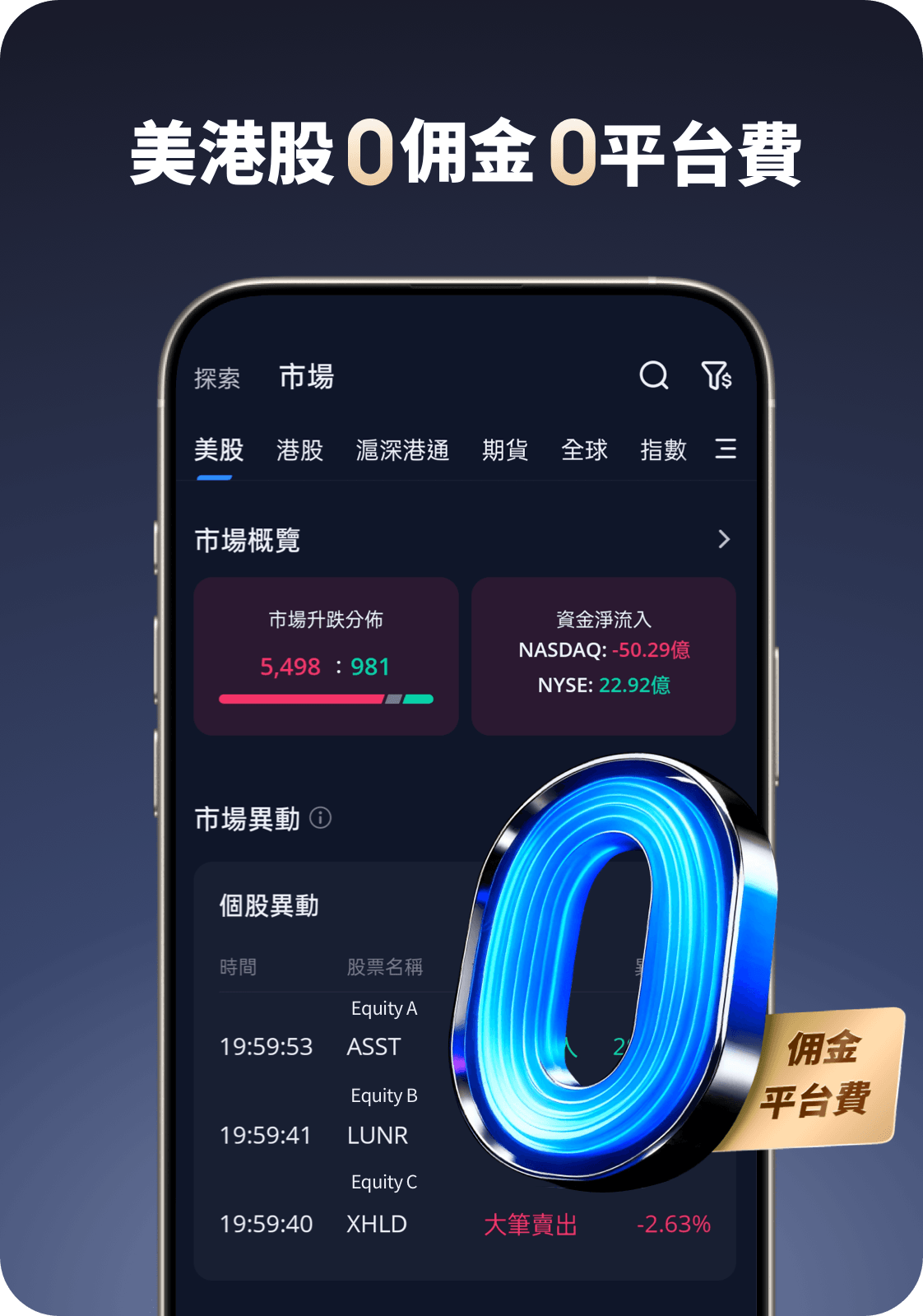 0佣金0平台費是指Webull美港股不收任何佣金與平台費。有關Webull收費詳情請瀏覽公司官方網頁https://www.webull.hk