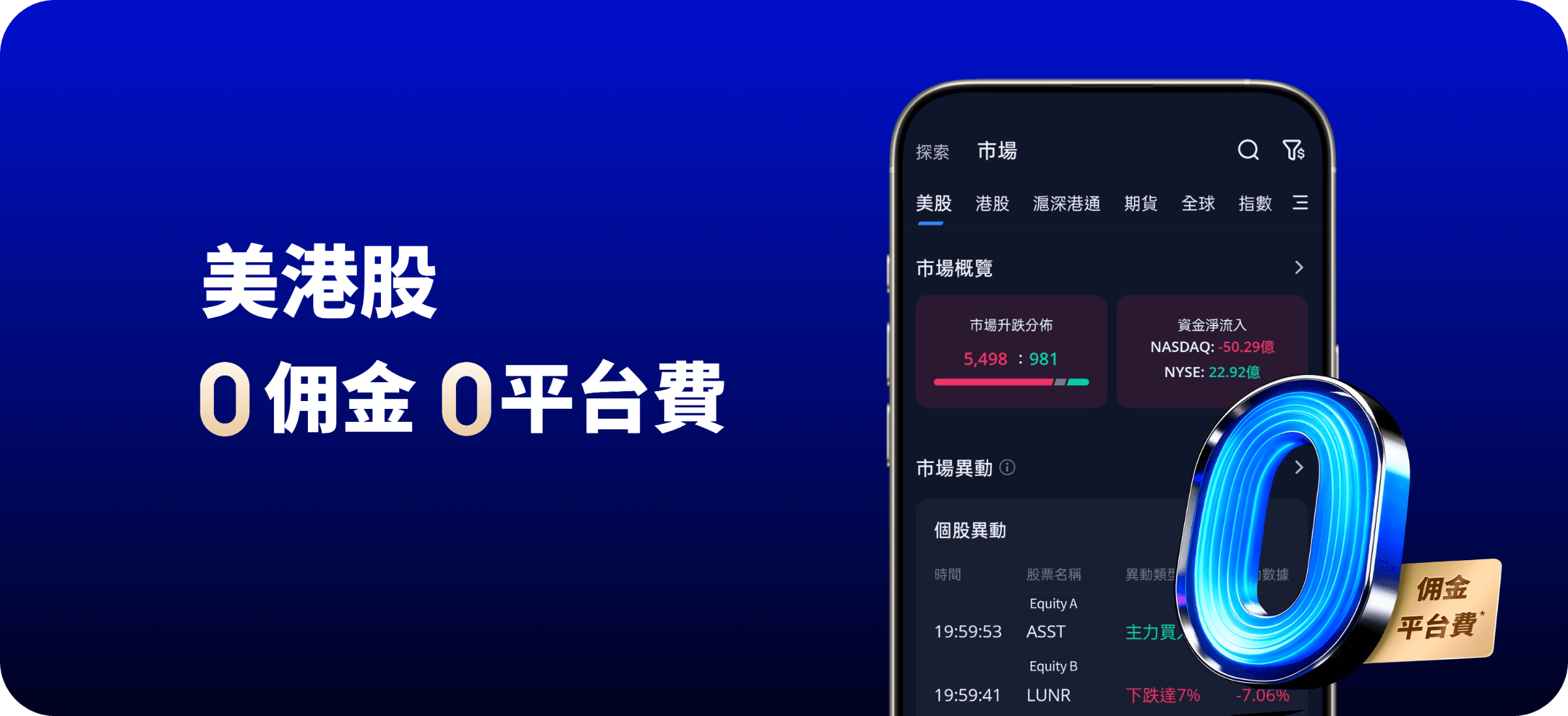 0佣金0平台費是指Webull美港股不收任何佣金與平台費。優惠收費設有期限,直至另行通知。有關Webull收費詳情請瀏覽公司官方網頁https://www.webull.hk