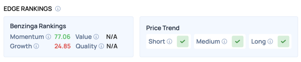 Benzinga Edge Rankings: The stock’s rally Wednesday is reflected in its strong Benzinga Edge Momentum score of 77.06.