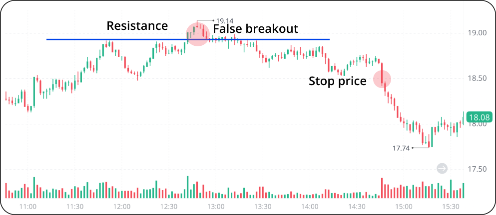 並非所有的突破都是成功的。“假突破”是指價格走勢在短時間內出現了突破形態(例如突破震盪區間、穿越支撐線或阻力線等),但隨後未能形成新趨勢,反而又恢復到橫行整理的情況。這種情況可能會誤導投資者,做出虧損的交易決策,因此需要小心應對。