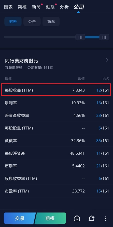投資者可以通過點撃微牛上的公司>財務,查看公司的 TTM EPS(12-M 尾隨 EPS)排名。