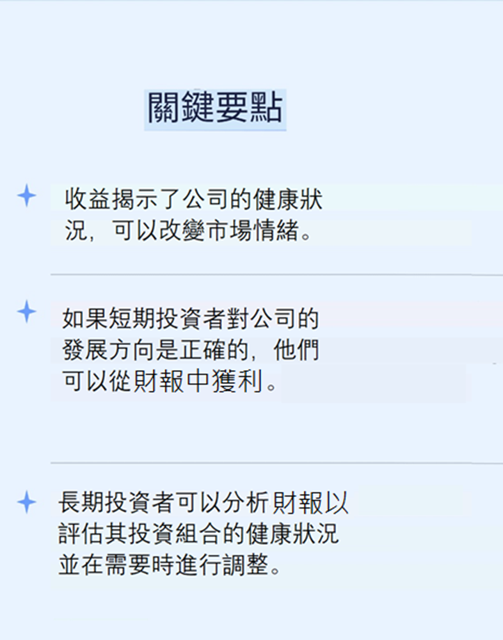 長期投資者可以分析財報以評估其投資組合的健康狀況,並在需要時進行調整。但是,也應該避免因短期價格波動而過度修正投資。